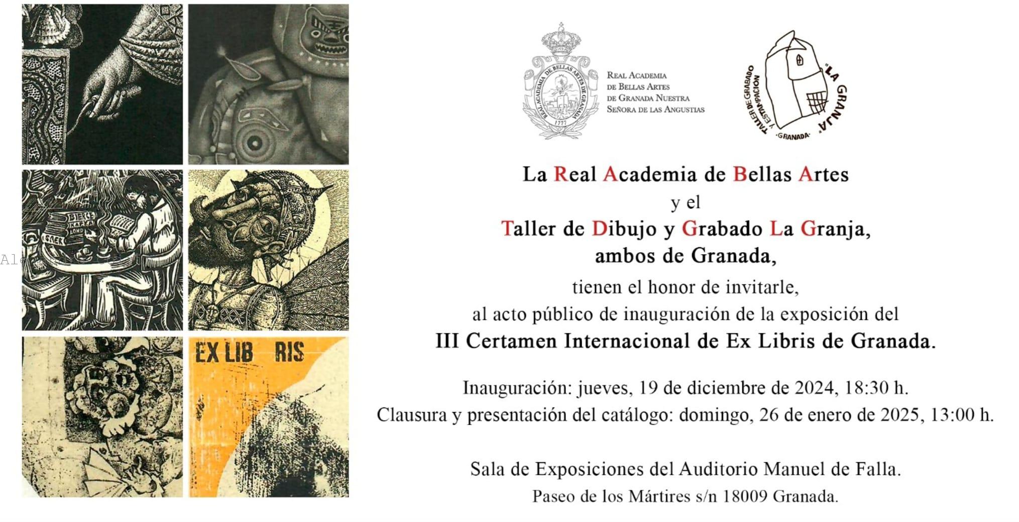 *Mayo, lll Certamen Internacional de Ex Libris de Granada, Real Academia de Bellas Artes de Granada, Nuestra Señora de las Angustias, España