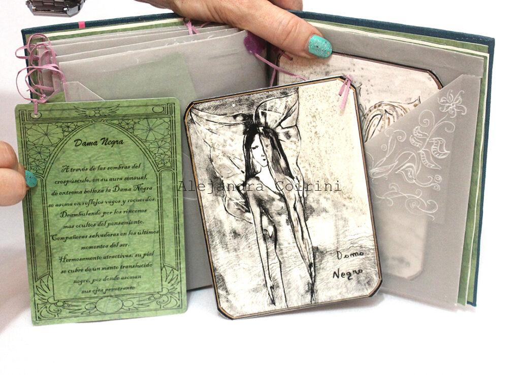 Este libro de artista es una obra única y poética, construida con litografías y textos que dialogan íntimamente entre sí. Se trata de un libro-objeto de carácter visual y narrativo, en el que cada página revela a una figura femenina mítica: las “Damas” o hadas que habitan distintos aspectos de la naturaleza y el alma.